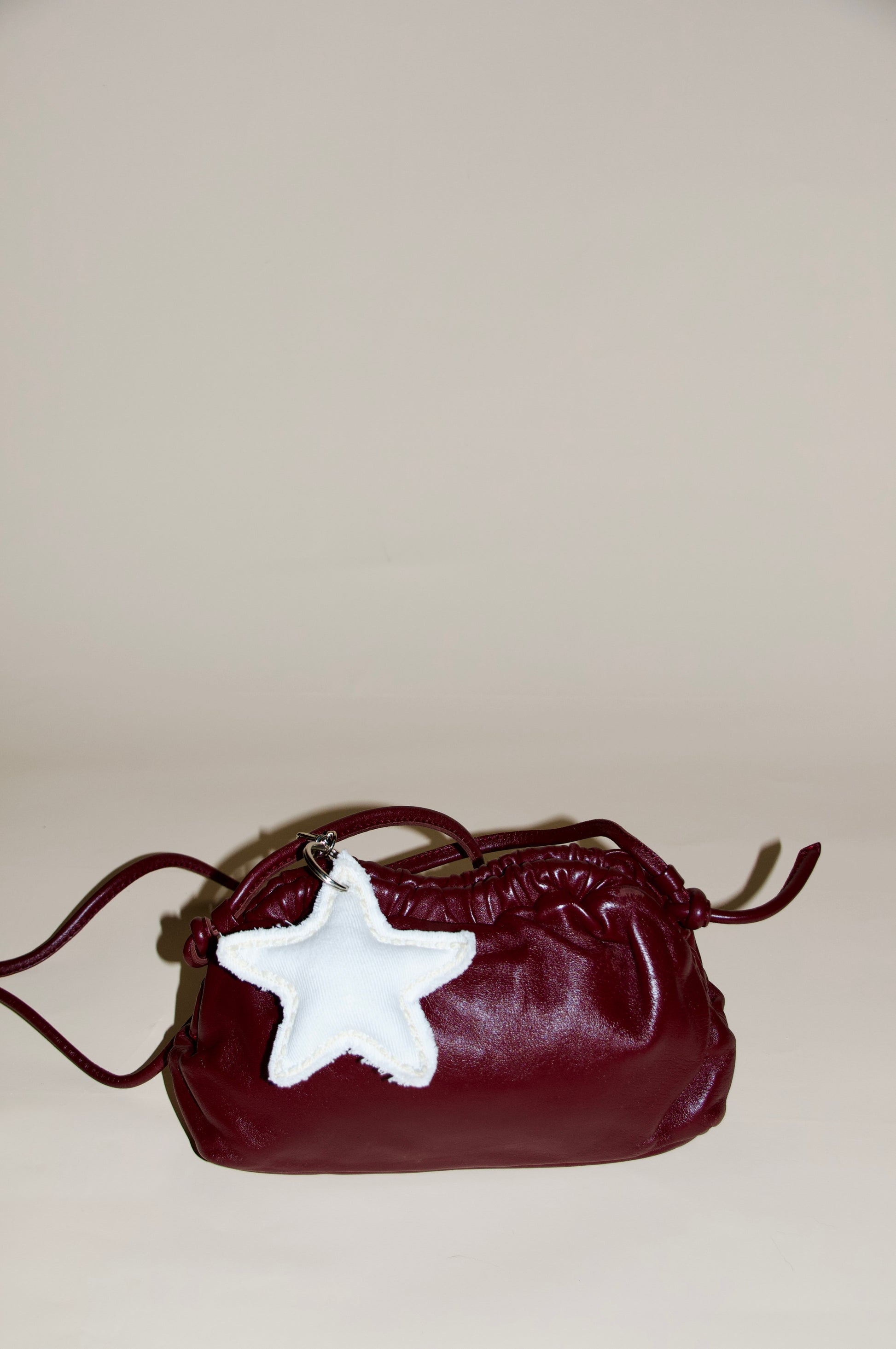 Crafted from premium denim fabric, this star charm has an ivory hue that is paired with beige stitching. Never forget you were created to be the brightest star wherever you go. "He determines the number of the stars and calls them each by name." Psalm 147:4